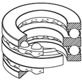NSK的推力球轴承采用高速运转时可承受推力载荷的设计,由带有球滚动的滚道沟的垫圈状套圈构成。由于套圈为座垫形,因此,推力球轴承被分为平底座垫型和调心球面座垫型两种类型。另外,这种轴承可承受轴向载荷,但不能承受径向载荷。